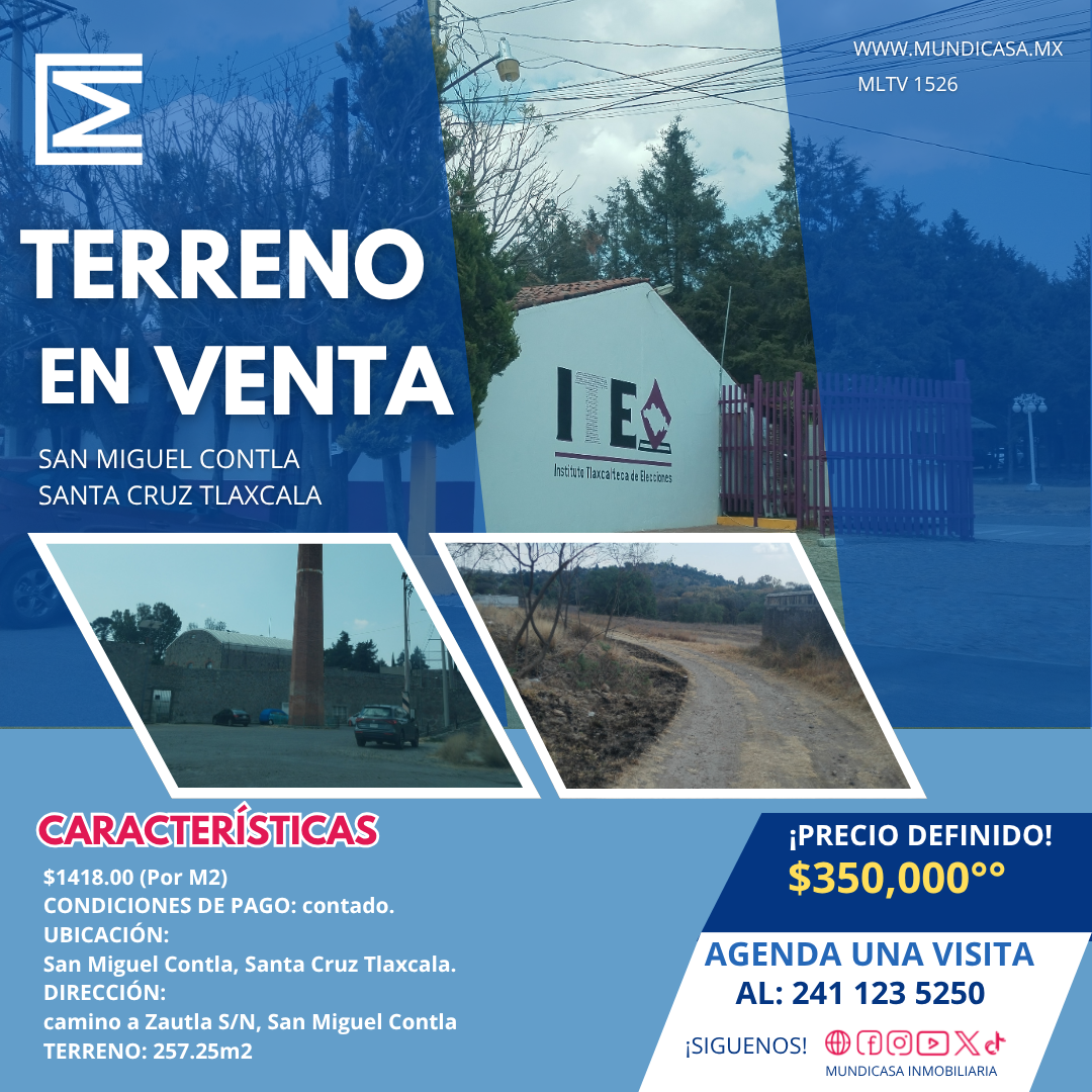 - Observaciones: 1 minuto de universidad nacional autónoma de mexico 1 minuto del instituto de elecciones de Tlaxcala 16 minutos de Apizaco principales accesos a la ciudad Cuenta con agua potable y servicio de CFE a 100m